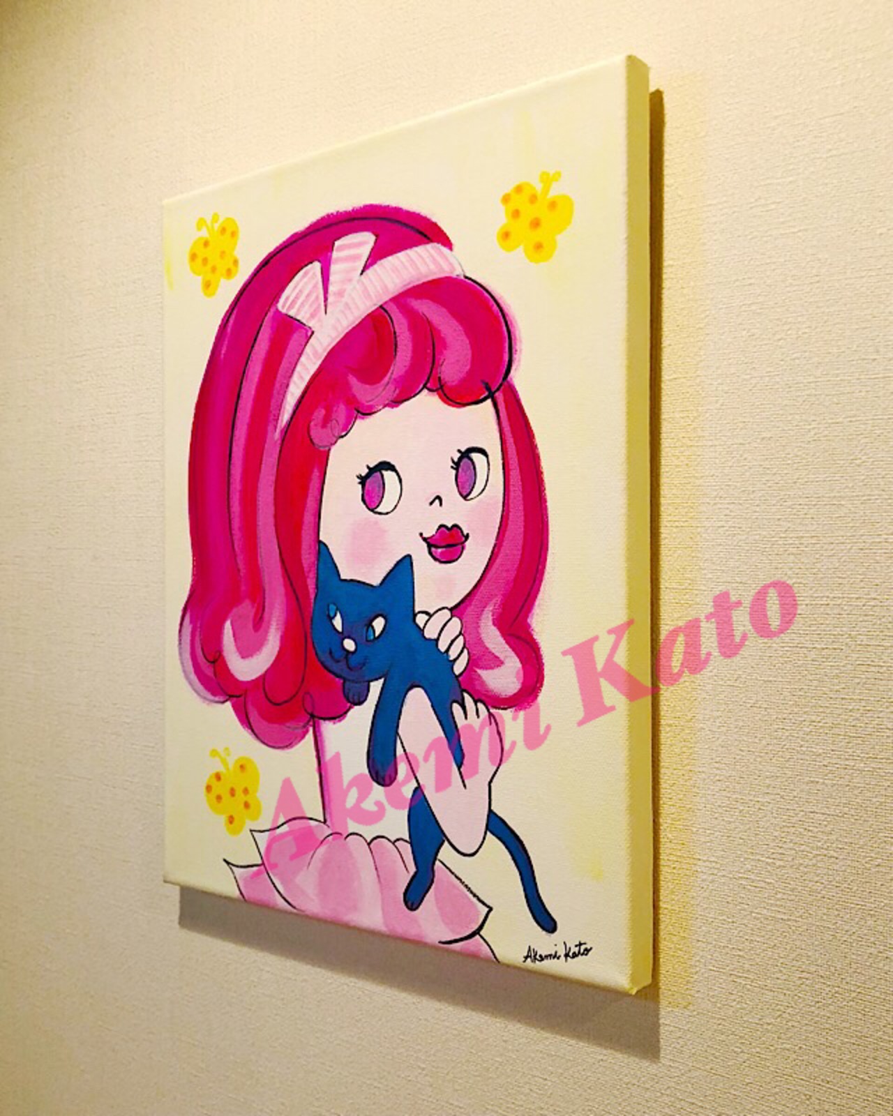 「黒猫とおしゃべり」アート作品 キャンバス画