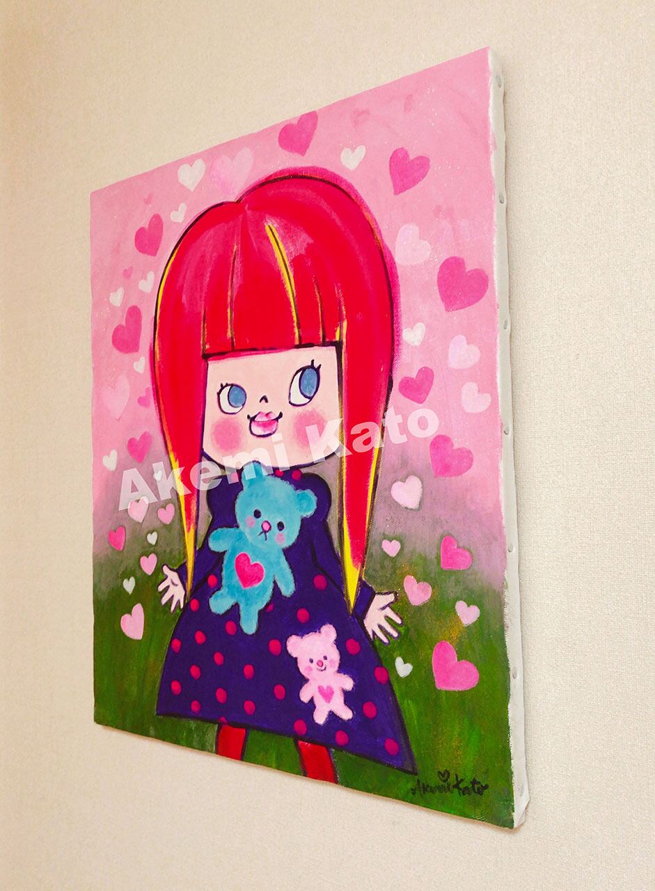 キャンバス画に描かれた女の子girlちゃんが、明るい笑顔で目を輝かせています。